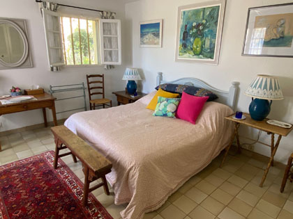 Bedroom 4, twin beds, french windows to garden, and air conditioning.